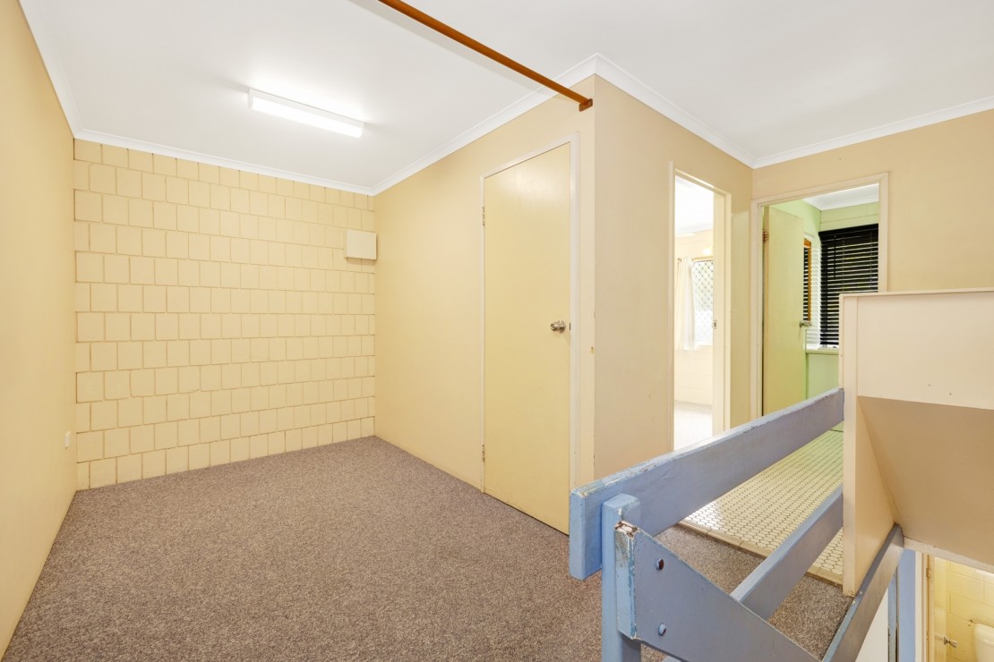 Inside, you'll find two air-conditioned bedrooms with built-ins, plus a large open multi-purpose room upstairs - perfect as a study, hobby space, or additional storage. The renovated main bathroom is also located on the upper level.