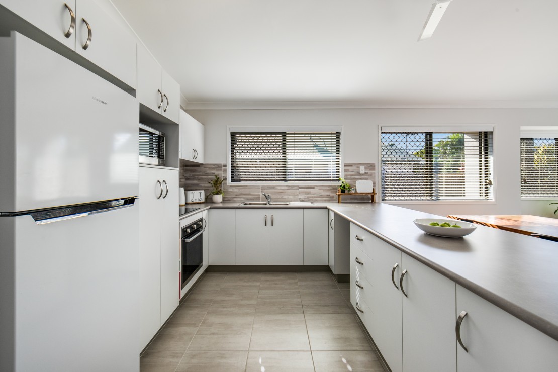 Three split system air-conditioned bedrooms all with built-ins, master features deluxe mirrored wardrobes and freshly renovated ensuite. The trendy stylish main bathroom offers a combination bath shower and separate toilet. The open plan split system air-conditioned living and dining features soaring high ceilings flowing onto the rear terrace. Sleek new kitchen overlooks the living spaces with large convenient eat in breakfast bar. Fully covered private rear outdoor casual family living overlooks the low maintenance pet friendly gardens. Double remote garage, double side gate entrance, ceiling fans and security screens throughout.