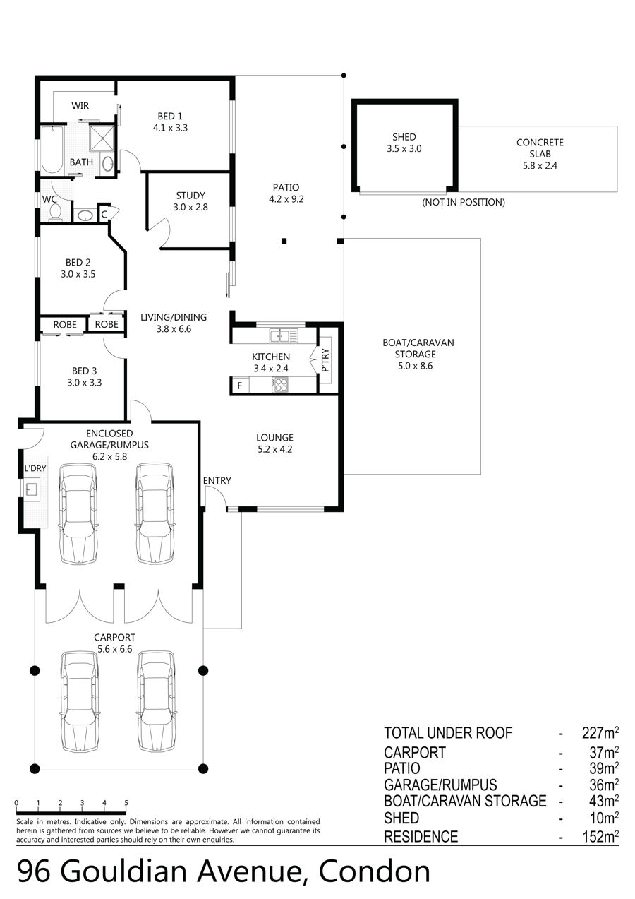 * Shed with roller door and concrete slab for boat