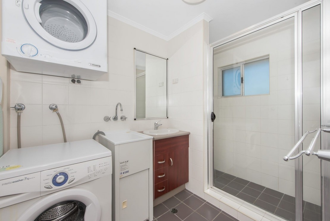 * Combination bathroom / laundry includes a washing machine and dryer, with a separate toilet