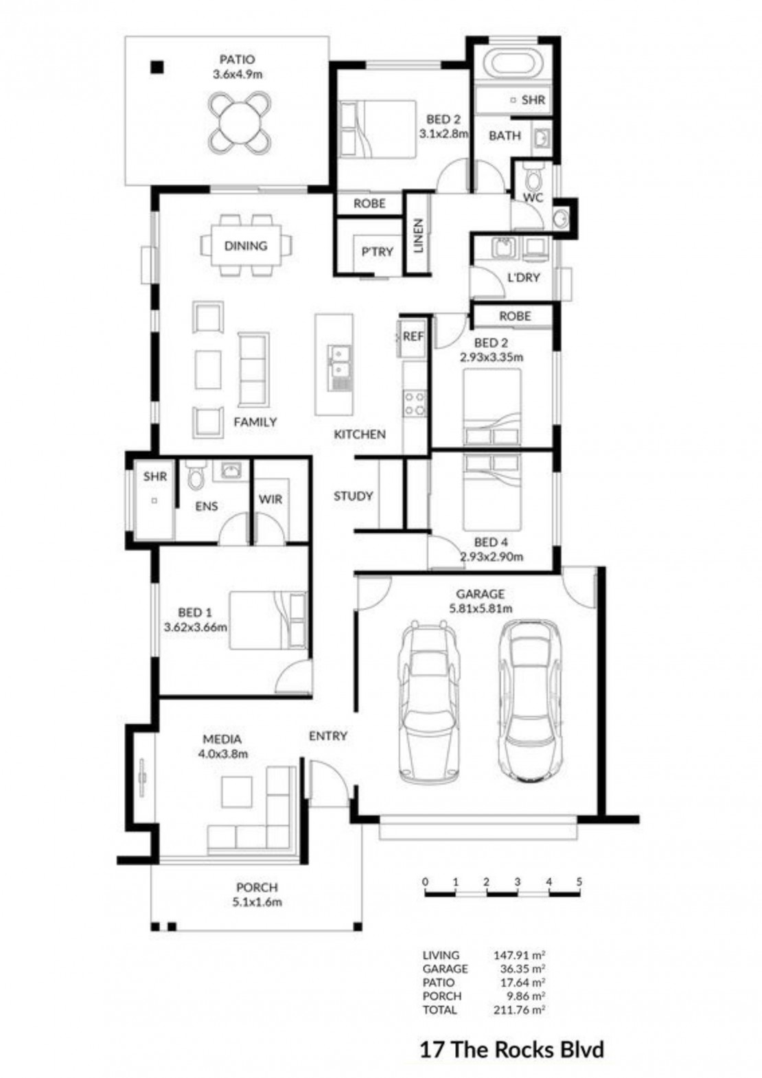 - Split system open plan living and dining flows onto the outdoor area.