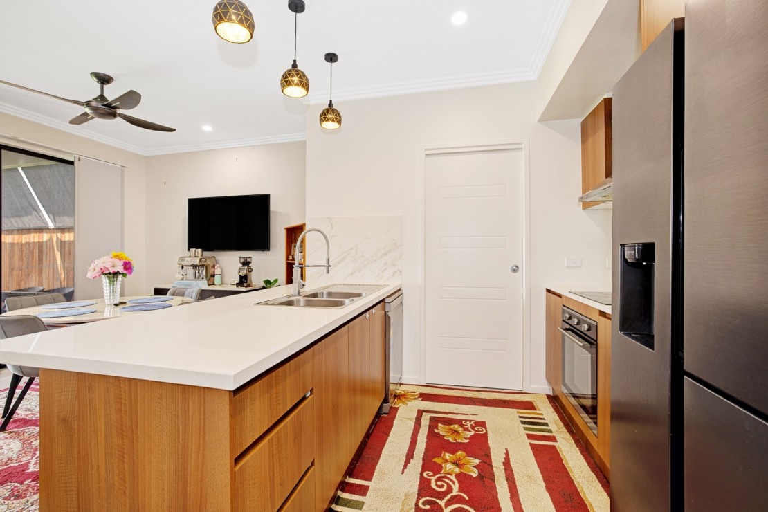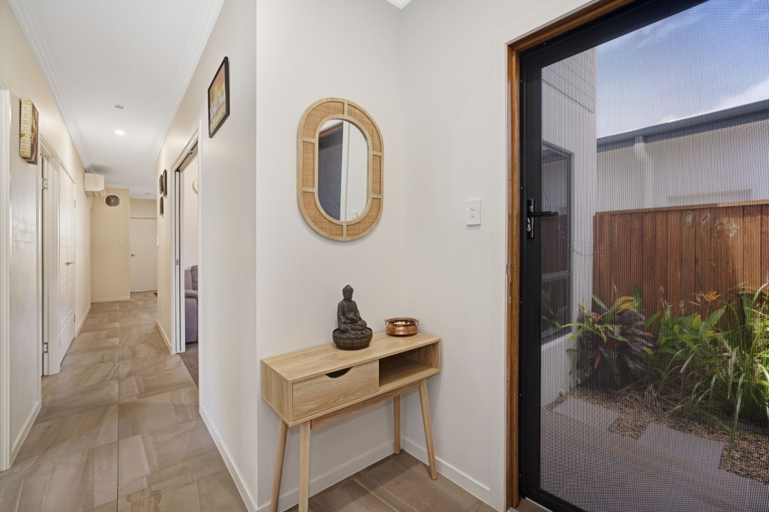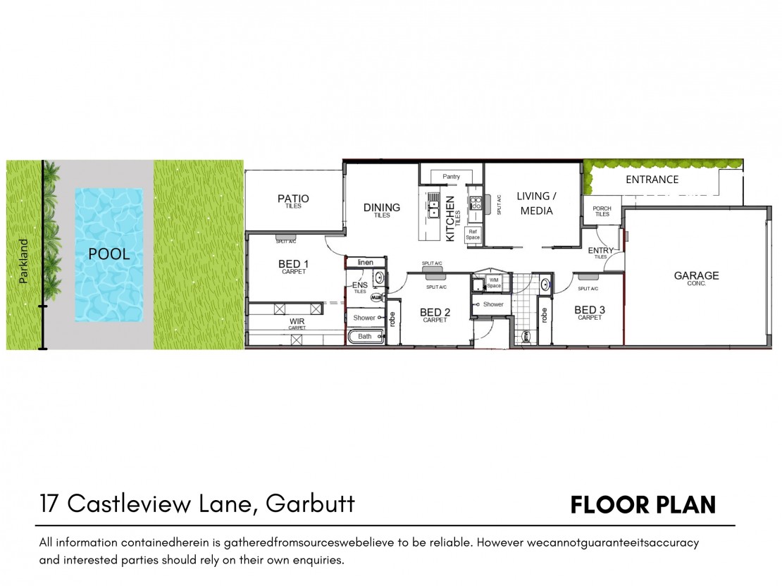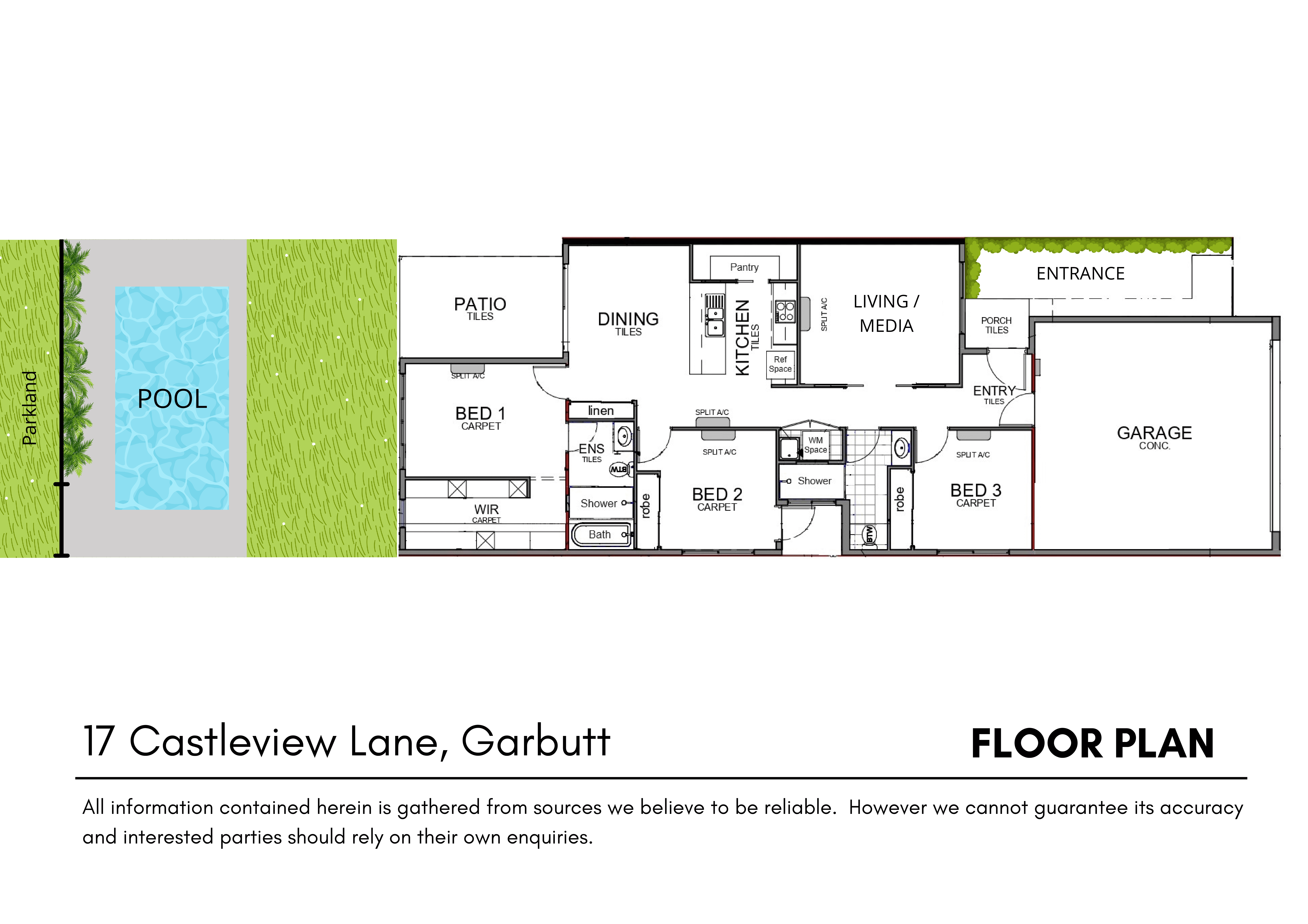 Three split system air-conditioned bedrooms with built-ins, the master bedroom has an oversized walk-in robe and indulgent ensuite with bath. The main bathroom has an oversized shower / toilet combination. Separate split system air-conditioned living and dining areas. The functional kitchen includes a walk-in pantry and convenient breakfast bar. The fully covered all weather outdoor area and pool is ideal for relaxed casual carefree living. A rear gate allows for direct access to beautifully maintained recreational parkland, yours to enjoy but not maintain. Double remote garage, ceiling fans, security screens and power saving 6.6kW solar.