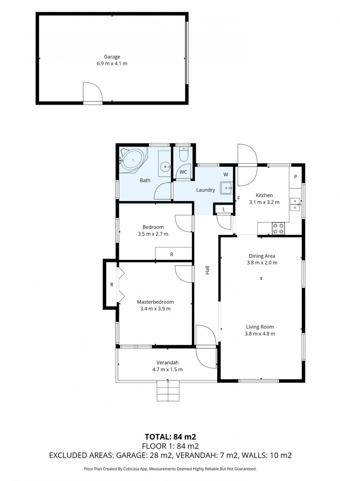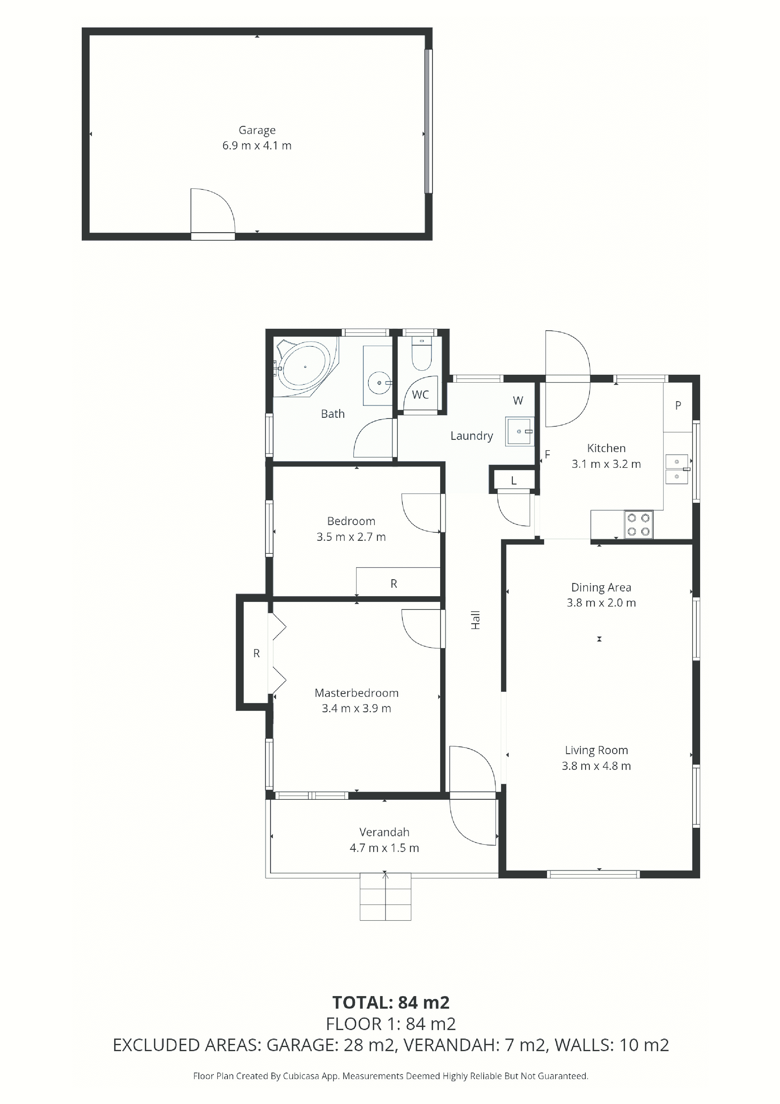 * Rear roller door garage with personal side door