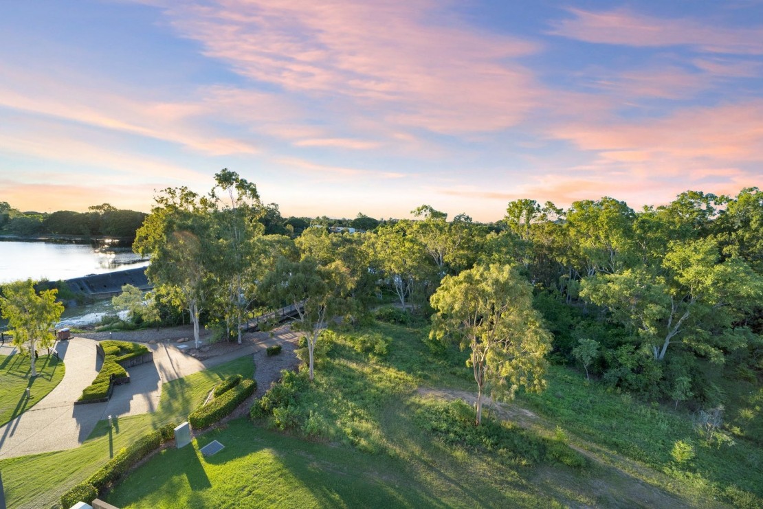 * Master bedroom enjoys a walk-in robe, indulgent ensuite with his and hers shower heads and access to a balcony overlooking the Ross River.
