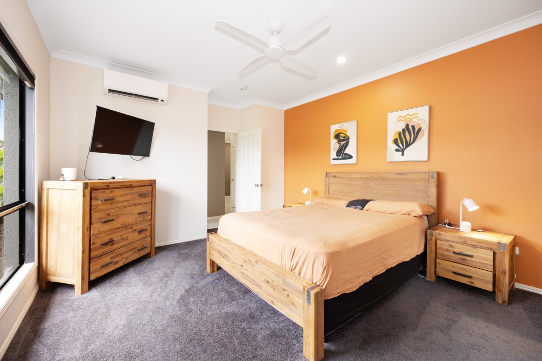 Three split-system air-conditioned bedrooms with built-ins, including an oversized master bedroom featuring an ensuite and walk-in robe. The stylish main bathroom offers a separate shower, bath and toilet. A separate split-system room provides flexible space as an additional living area or optional fourth bedroom.