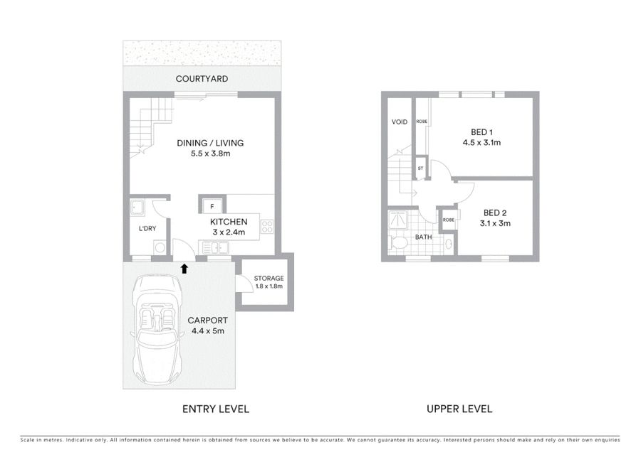 The upper level has two air-conditioned bedrooms with built-in wardrobes, and a bathroom with shower and toilet combination. The lower living area has split system air-conditioning and opens onto the private rear courtyard, ideal for relaxed casual living. Overlooking the living and dining areas is the modern and functional kitchen complete with a breakfast bar. Internal laundry, ceiling fans and security screens throughout. Carport car accommodation with secure storage.